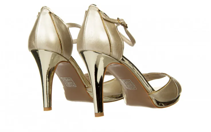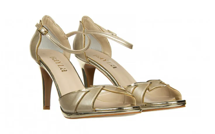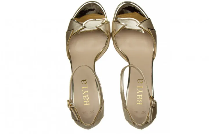 Sandały marki Bayla wykonane ze skóry ekologicznej w kolorze złotym.