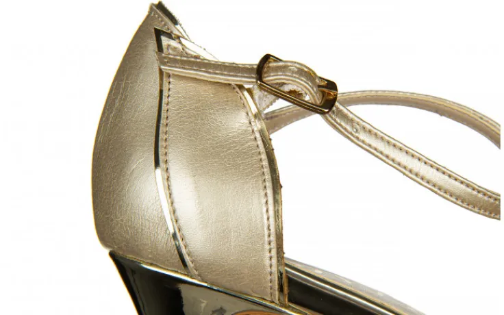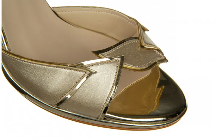 Buty są lekkie, wygodne i pięknie prezentują się na nodze. Sandały mają zakrytą piętę i odkryte palce. Przedni pasek w formie matowych listków z lakierowanym obrysem nadaje im wyjątkowego, kobiecego charakteru i przyciąga wzrok. Kształt paska sprawia, że buty dobrze trzymają stopę, nie powodując odgnieceń. Zapięcie na klamerkę na pasku okalającym kostkę pozwala dopasować buty do szerokości każdej stopy. Platforma niweluje wysokość obcasa sprawiając, że buty są bardzo wygodne i stabilne.