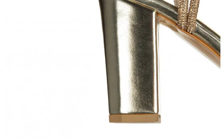 Buty są lekkie, wygodne i pięknie prezentują się na nodze. Złoty kolor paseczków w połączeniu z delikatnymi, złotymi kamyczkami nadaje im wyjątkowego, kobiecego charakteru i przyciąga wzrok. Efektowna przesuwna ozdoba z zewnętrznej strony ściagąjąca pasek oplatający kostkę pozwala dopasować buty do szerokości każdej stopy. Stabilny obcas pozwala zachować równowagę nawet przy bardzo problematycznym podłożu. Paski od wewnętrzej strony obite są miękkim w dotyku materiałem. Trzy paski przy palcach dobrze trzymają stopę.