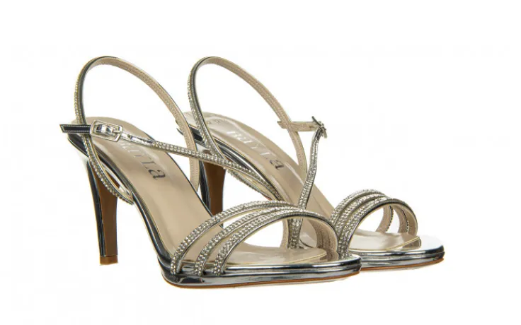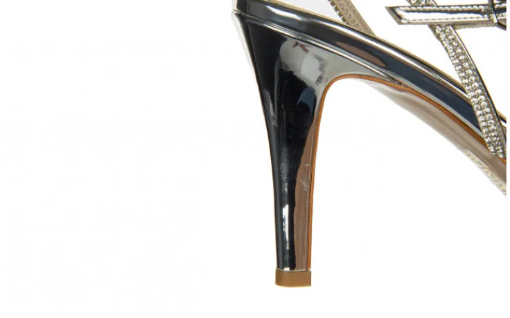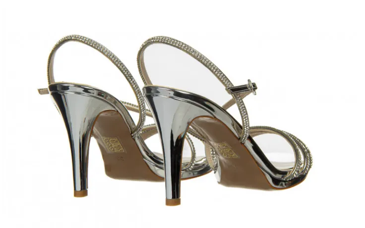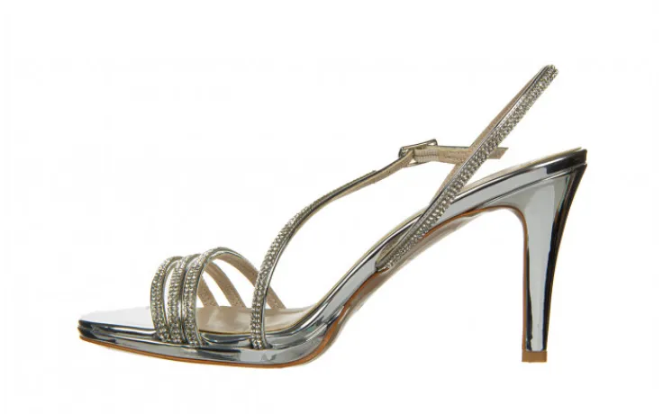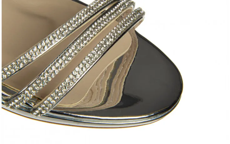 Buty są lekkie, wygodne i pięknie prezentują się na nodze. Srebrny kolor paseczków w połączeniu z delikatnymi, srebrnymi kamyczkami nadaje im wyjątkowego, kobiecego charakteru i przyciąga wzrok. Ich splot sprawia, że buty dobrze trzymają stopę. Zapięcie na klamerkę pozwala dopasować buty do szerokości każdej stopy. Platforma niweluje wysokość obcasa sprawiając, że buty są bardzo wygodne i stabilne.