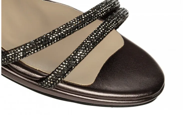 Buty są lekkie, wygodne i pięknie prezentują się na nodze. Czarny kolor paseczków w połączeniu z delikatnymi błyszczącymi kamyczkami w kolorze niklowym nadaje im wyjątkowego, kobiecego charakteru i przyciąga wzrok. Ich splot sprawia, że buty dobrze trzymają stopę. Zapięcie na klamerkę pozwala dopasować buty do szerokości każdej stopy. Platforma niweluje wysokość obcasa sprawiając, że buty są bardzo wygodne i stabilne.