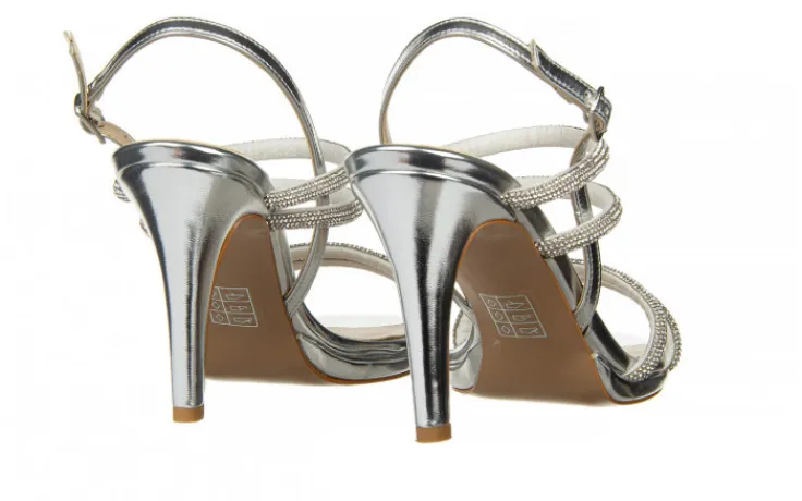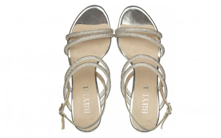 Sandały marki Bayla wykonane ze skóry ekologicznej w kolorze srebrnym, lakierowane.