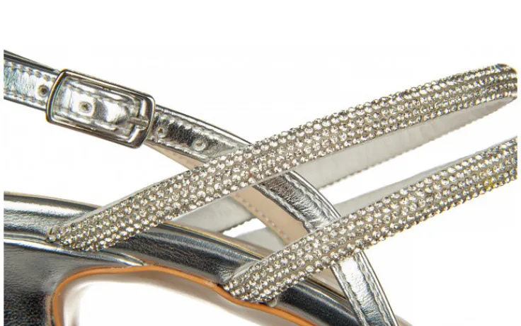 Buty są lekkie, wygodne i pięknie prezentują się na nodze. Srebrny kolor paseczków w połączeniu z delikatnymi błyszczącymi kamyczkami nadaje im wyjątkowego, kobiecego charakteru i przyciąga wzrok. Ich splot sprawia, że buty dobrze trzymają stopę. Zapięcie na klamerkę pozwala dopasować buty do szerokości każdej stopy. Platforma niweluje wysokość obcasa sprawiając, że buty są bardzo wygodne i stabilne.