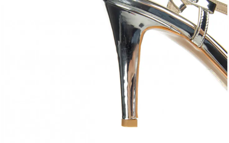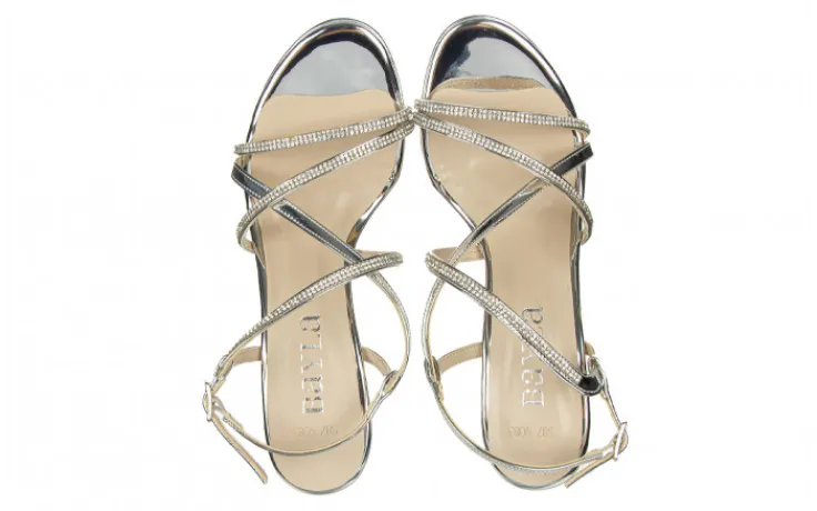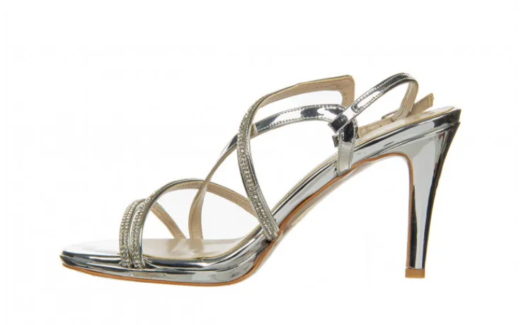 Buty są lekkie, wygodne i pięknie prezentują się na nodze. Srebrny kolor paseczków w połączeniu z delikatnymi pięknie mieniącymi się kamyczkami nadaje im wyjątkowego, kobiecego charakteru i przyciąga wzrok. Splot pasków sprawia, że buty dobrze trzymają stopę. Zapięcie na klamerkę pozwala dopasować buty do szerokości każdej stopy. Niewielka platforma niweluje wysokość obcasa sprawiając, że buty są bardzo wygodne i stabilne.
