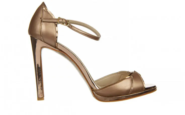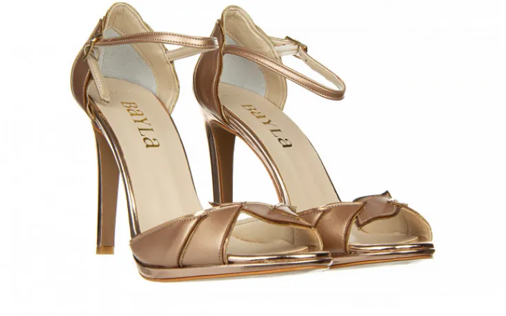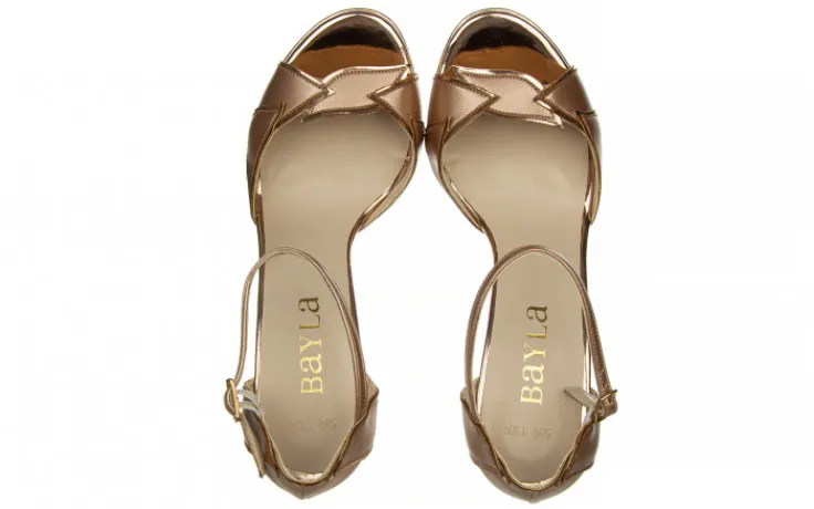 Sandały marki Bayla wykonane ze skóry ekologicznej w kolorze różowego złota.