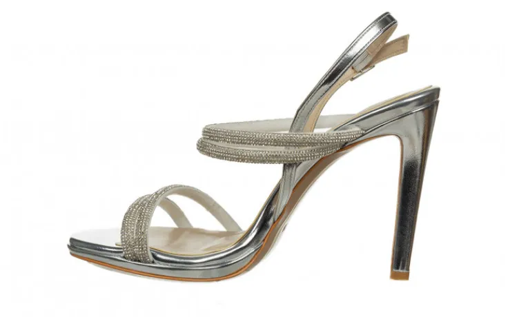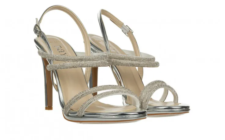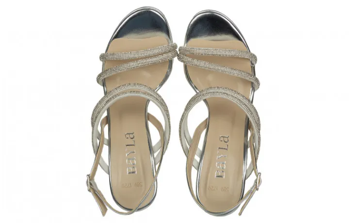 Sandały marki Bayla wykonane ze skóry ekologicznej w kolorze srebrnym.