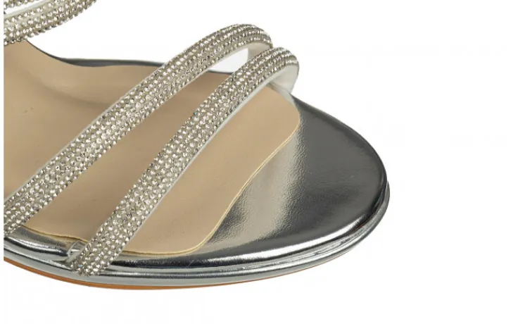 Buty są lekkie, wygodne i pięknie prezentują się na nodze. Srebrny kolor paseczków w połączeniu z delikatnymi błyszczącymi kamyczkami nadaje im wyjątkowego, kobiecego charakteru i przyciąga wzrok. Ich splot sprawia, że buty dobrze trzymają stopę. Zapięcie na klamerkę pozwala dopasować buty do szerokości każdej stopy. Platforma niweluje wysokość obcasa sprawiając, że buty są bardzo wygodne i stabilne.