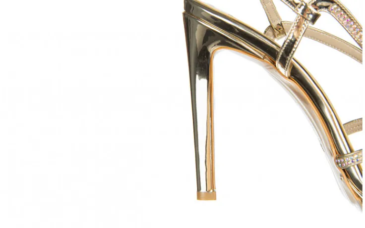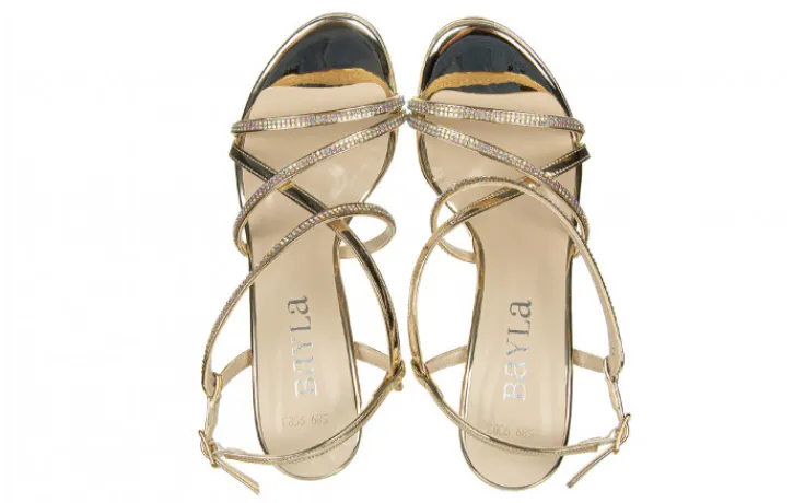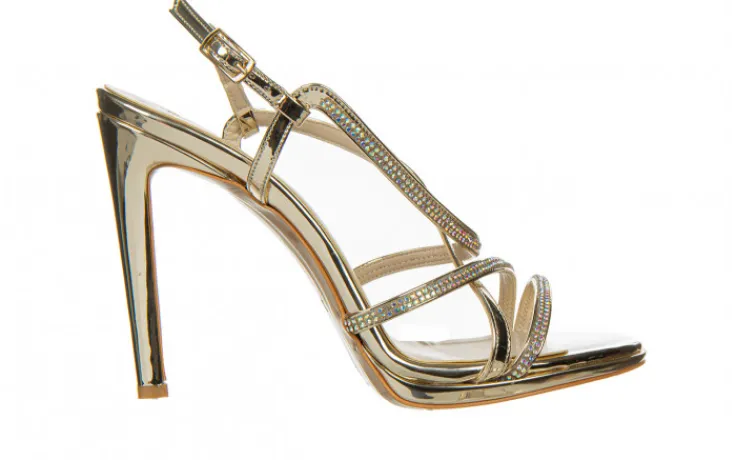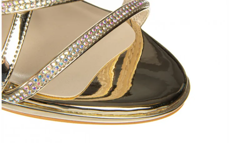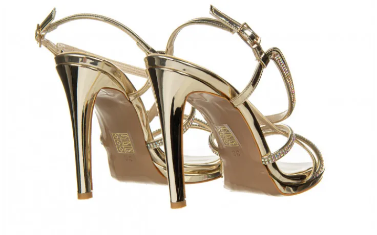 Buty są lekkie, wygodne i pięknie prezentują się na nodze. Złoty kolor paseczków w połączeniu z delikatnymi pięknie mieniącymi się kamyczkami nadaje im wyjątkowego, kobiecego charakteru i przyciąga wzrok. Splot pasków sprawia, że buty dobrze trzymają stopę. Zapięcie na klamerkę pozwala dopasować buty do szerokości każdej stopy. Platforma niweluje wysokość obcasa sprawiając, że buty są bardzo wygodne i stabilne.