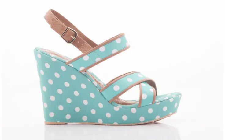 Polecamy sandały na platformie brazylijskiej marki Azaleia. Paski to połączenie miękkiej eko skóry i tkaniny. Wokół kostki zapinane na klamerkę. Zestawienie bieli i pastelowej zieleni z jasnym brązem nadaje typowo letniego charakteru. Koturny wykończone materiałem w białe kropki podkreślają lekkość i delikatność sandałów. 11 cm wysokość koturn niwelują 2,5 cm platformy.