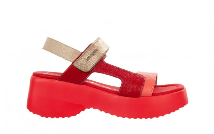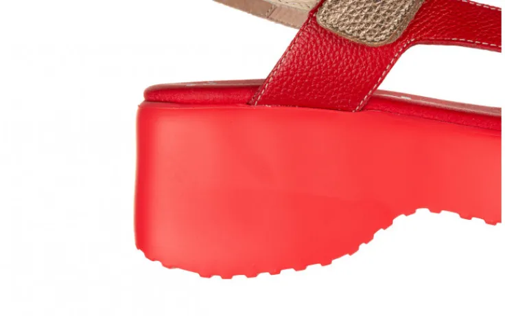 Sandały hiszpańskiej marki Wonders w kolorze różowym ze złotymi, beżowymi i koralowymi akcentami.