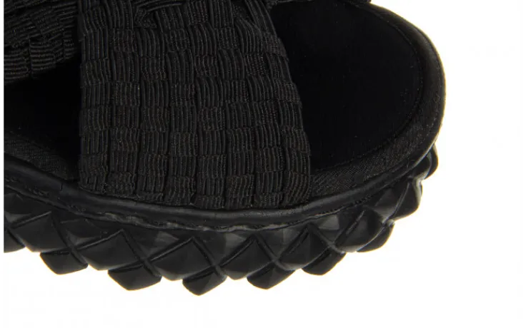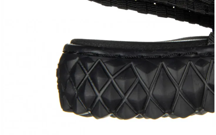 Plecione paski z wyjątkowo elastycznych gumek idealnie dopasowują się do indywidualnego kształtu stopy. Umiejscowienie pasków zapewnia stabilność podczas ruchów oraz utrzymuje stopę w miejscu. Miękka, piankowa wkładka z profilowaniem pod śródstopiem oraz lekka, antypoślizgowa podeszwa sprawiają, że buty są bardzo wygodne. Dodatkowym atutem jest możliwość prania w temperaturze 40 stopni.