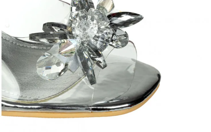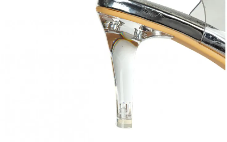 Przezroczysta cholewka z miękkiego silikonu jest przyjazna dla stopy, a skórzane wykończenie nadaje całości elegancki wygląd.