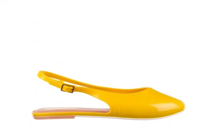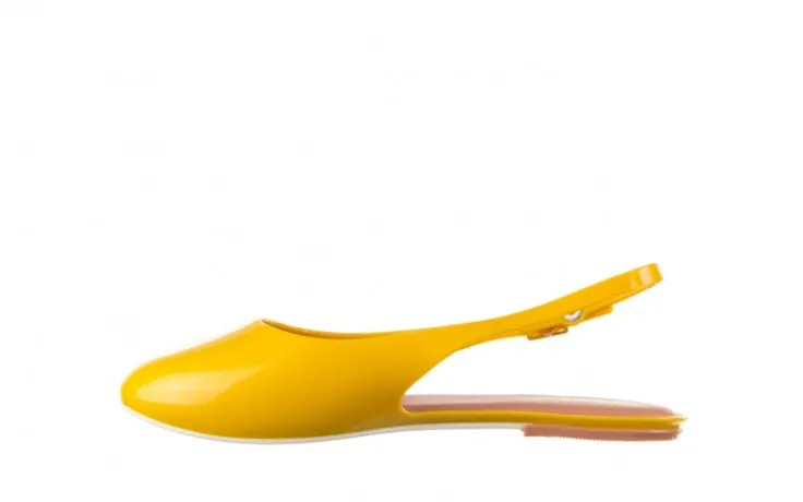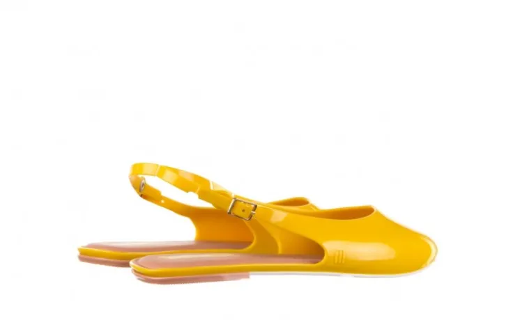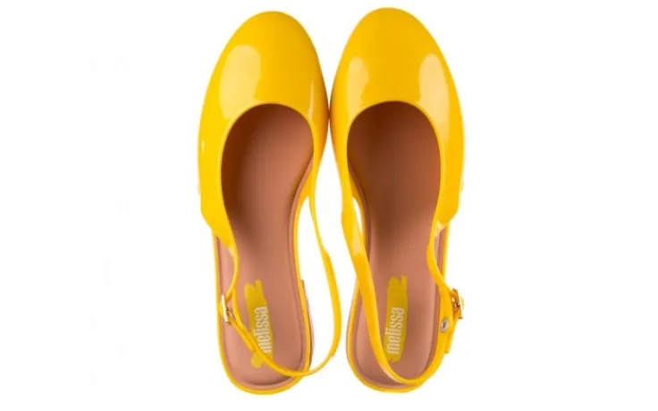 Sandały marki Melissa wykonane z tworzywa Mel- Flex w kolorze żółtym, musztardowym.