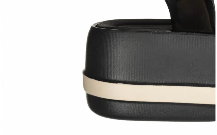 Wkładka i paski wykonane są z pianki EVA. Ułożenie pasków zapewnia stabilność podczas ruchów. Zapięcie z klamrą jest łatwe w regulacji oraz praktyczne. Antypoślizgowe podeszwy zrobione są z utwardzonego tworzywa syntetycznego wysokiej jakości. Z przodu na 2,5 cm podsówce.