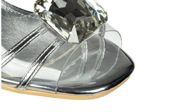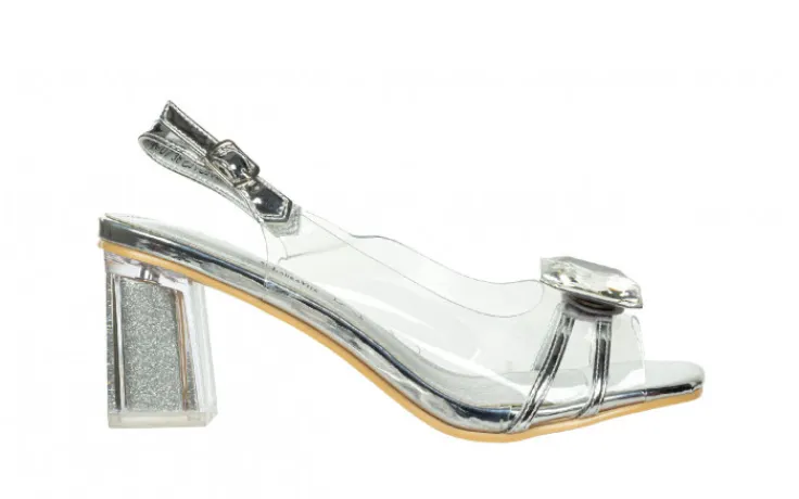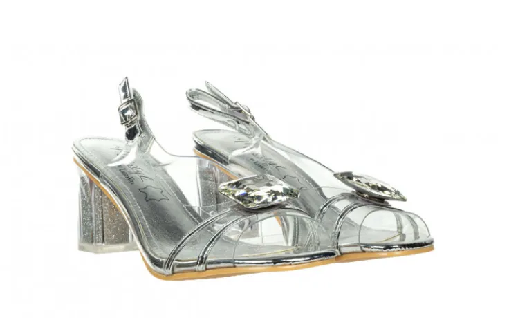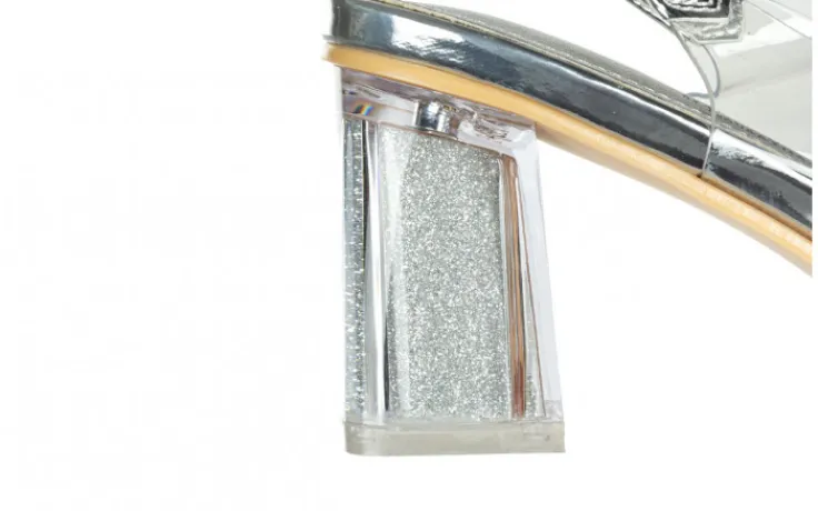 Przezroczysta cholewka z miękkiego silikonu jest przyjazna dla stopy, a skórzane wykończenie nadaje całości elegancki wygląd.