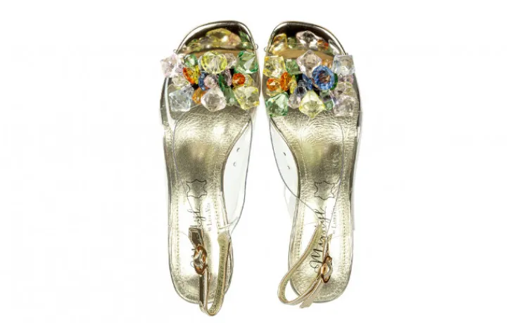 Przezroczysta cholewka z miękkiego silikonu jest przyjazna dla stopy, a skórzane wykończenie nadaje całości elegancki wygląd.