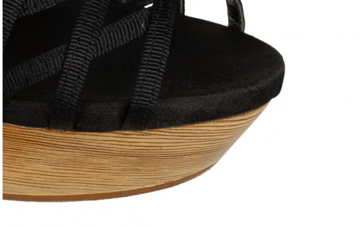 Sandały damskie na koturnie, zasuwane. Paski oraz wkładka wykonane z materiału tekstylnego. Podeszwa z tworzywa sytetycznego wysokiej jakości. Obuwie idealne na letnie dni.