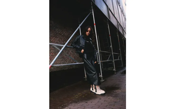 Wielopozycyjne sznurowadła w stylu trekkingowym. Spersonalizowany emblemat zarówno na pięcie, jak i z boku na pasku.