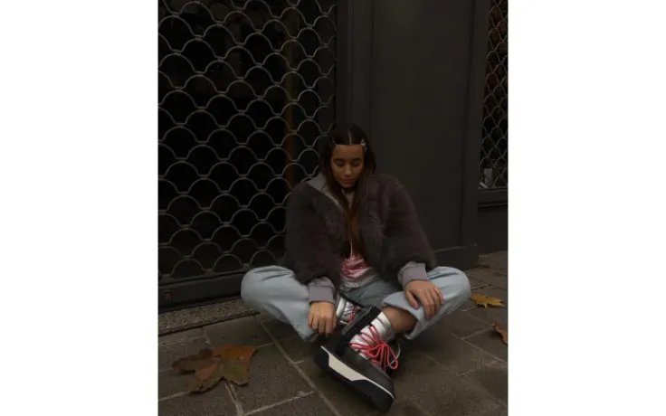 Wielopozycyjne sznurowadła w stylu trekkingowym. Spersonalizowany emblemat zarówno na pięcie, jak i z boku na pasku.