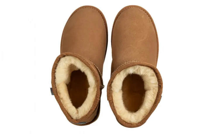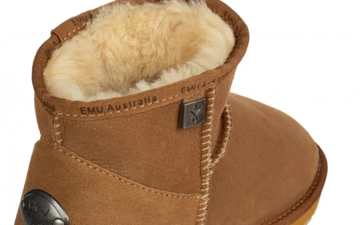 Śniegowce australijskiej marki EMU wykonane z wodoodpornej naturalnej skóry owczej w kolorze brązowym.