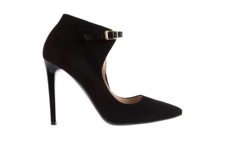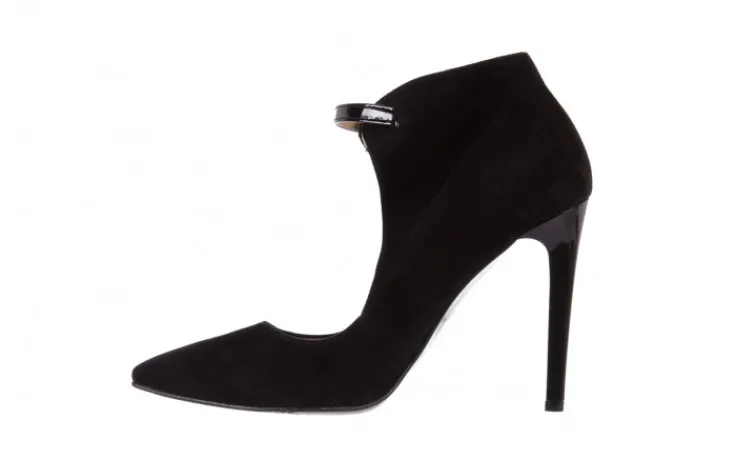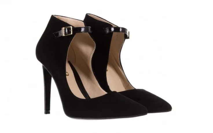 Czarne szpilki marki Bayla w całości wykonane są ze skóry naturalnej pokrytej zamszem. Gustowne wycięcie cholewki w połączeniu z subtelnym, lakierowanym paseczkiem z przodu czółenka tworzy elegancką całóść. Buty posiadają wyściółkę ze skóry naturalnej i antypoślizgową podeszwę, dzięki czemu mimo dużej wysokości obcasa są bardzo komfortowe w użytkowaniu. Czarny zamsz z którego są wykonane szpilki Bayla, to materiał który idealnie skomponuje się nawet z bardzo eleganckimi zestawami.