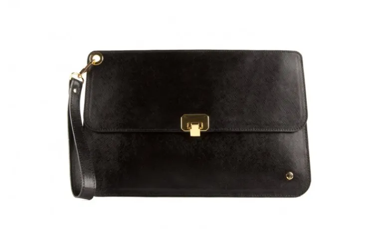 Czarna torebka- koperta wylonana ze skóry naturalnej- saffiano.