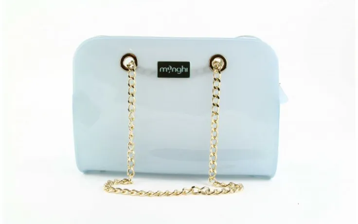 25 lat doświadczenia w produkcji obuwia z polichlorku winylu zaowocowało powstaniem modnych torebek marki Menghi. Włoski design, styl i klasa łączą się tworząc dziewczęcy model Bauletto. Złote łańcuchy uchwytów pięknie wyglądają w połączeniu z delikatnym, błękitnym kolorem torby. Główna komora zapinana na zamek. Klasyczne wymiary pomieszczą wszystkie drobiazgi współczesnej kobiety. Każdy detal jest wykonany z pietyzmem typowym dla włoskich producentów. Torebka wywrze niezapomniane wrażenie w każdym towarzystwie. Idealnie podkreśli dzienne stylizacje.