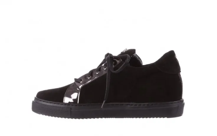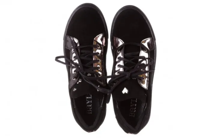 Trampki marki Bayla wykonane ze skóry naturalnej zamszowej w kolorze czarnym.