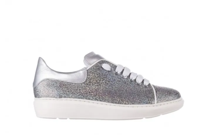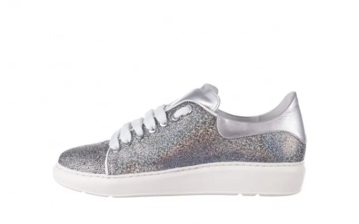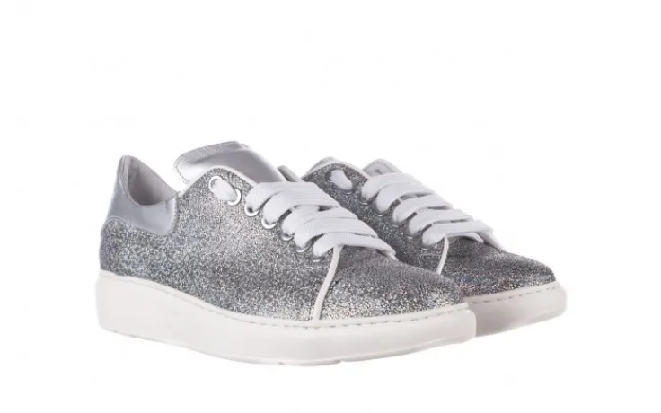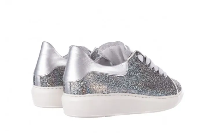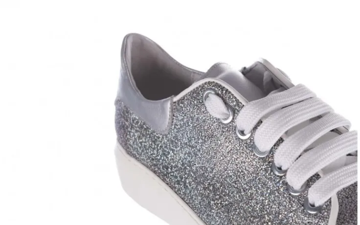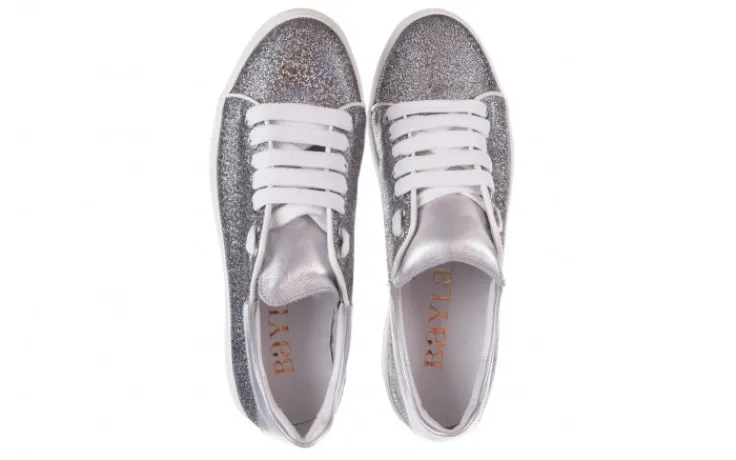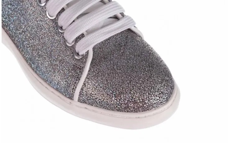 Wykonane z skóry naturalnej pokrytej brokatem. Obuwie sznurowane.