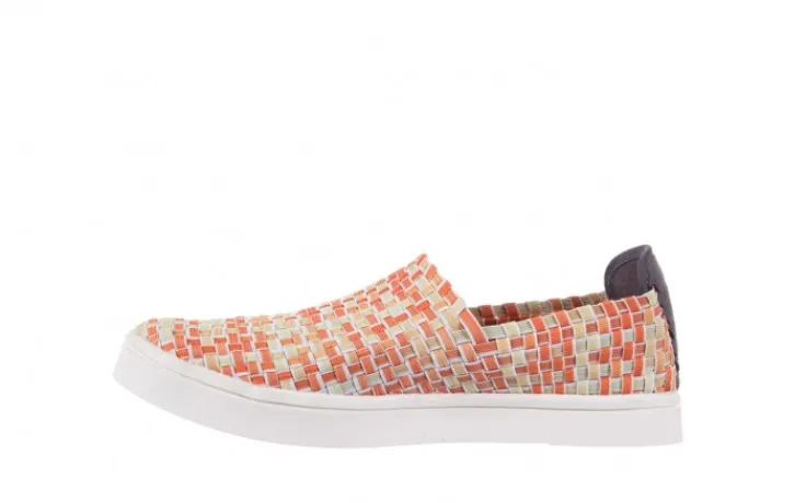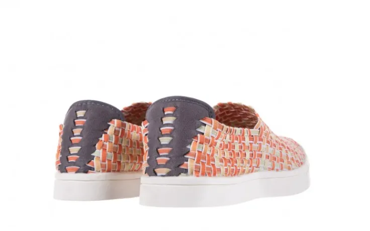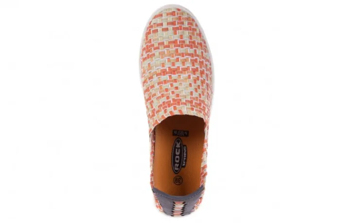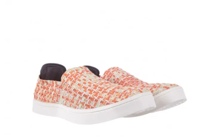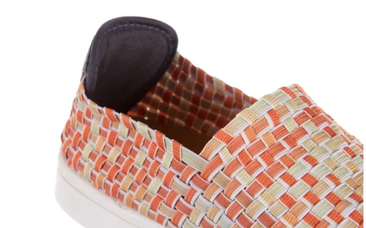 Trampki typu slip on marki Rock Spring. Plecione cholewki w odcieniach koloru zielonego i pomarańczowego wykonane są z wyjątkowo eleastycznych gumek, idealnie dopasowują się do indywidualnego kształtu stopy. Wyściółka wykonana z materiału, lekkie podeszwy umożliwią wygodne użytkowanie.