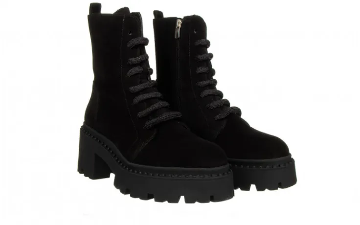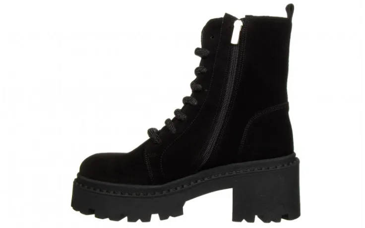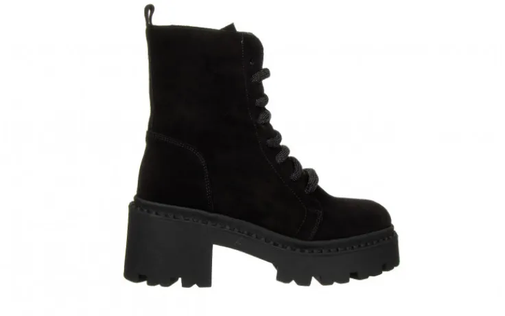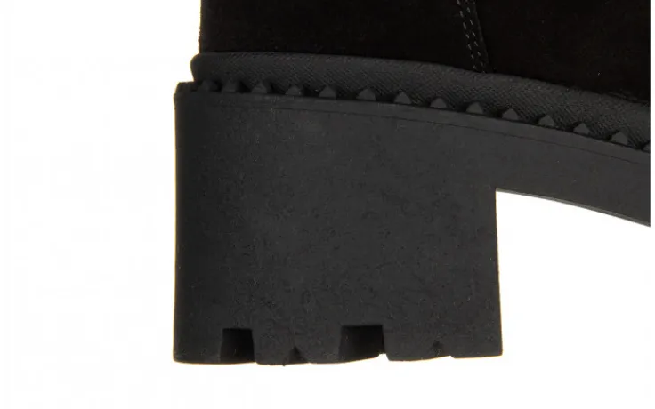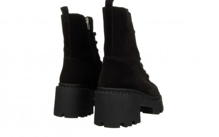 Trzewiki marki Bayla wykonane ze skóry naturalnej zamszowej w kolorze czarnym.