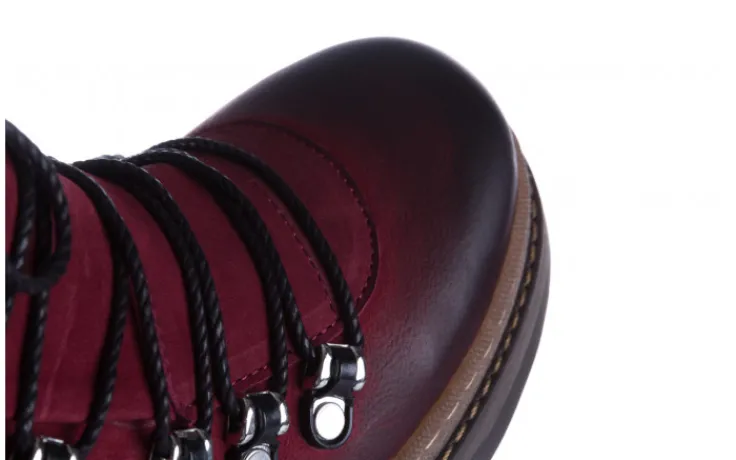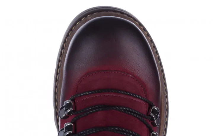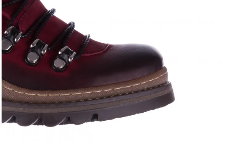 Trzewiki marki Bayla wykonane ze skóry naturalnej w kolorze bordowym.