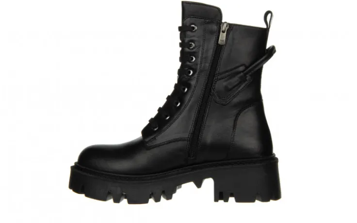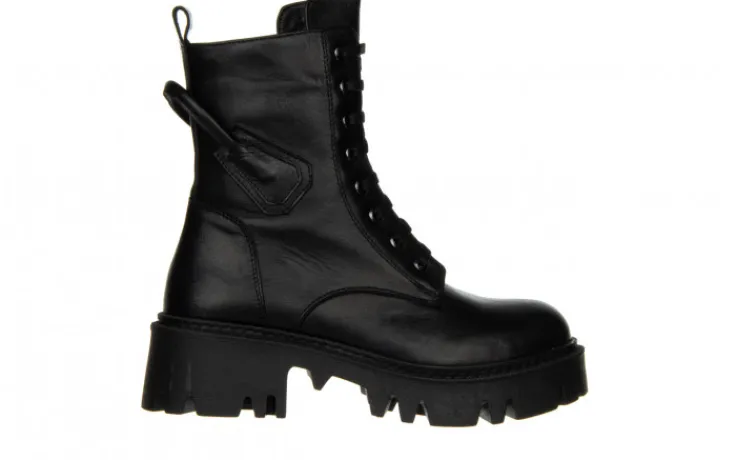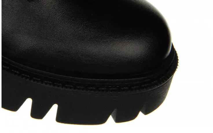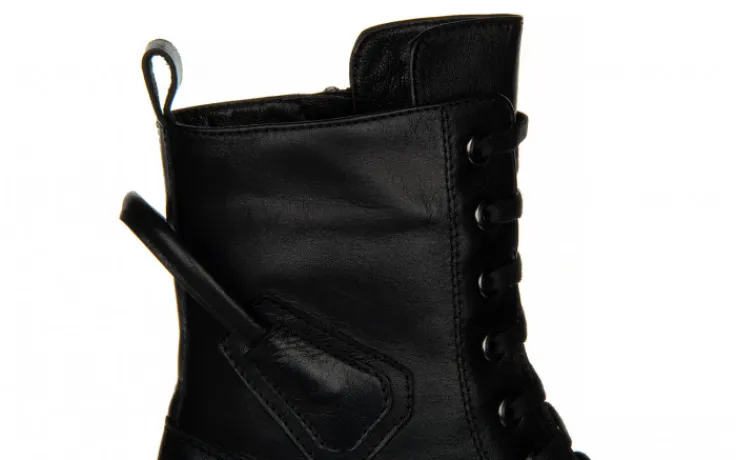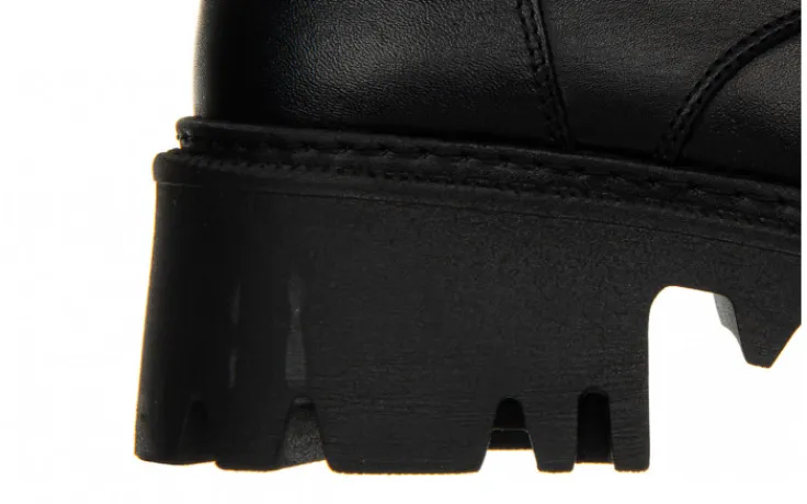 Wyższa cholewka wykonana jest z miękkiej skóry naturalnej wysokiej jakości. Dzięki sznurowaniom można idealnie dopasować buty do tęgości stopy, natomiast wygodny zamek z wewnętrznej strony ułatwia szybkie zakładanie i zdejmowanie obuwia bez konieczności ciągłego sznurowania. Model przyozdobiony na tylnej częsci ciekawym paskiem. Platforma dodaje centymetrów i przy tym sprawia, że buty stają się bardzo wygodne. Antypoślizgowa, gumowa podeszwa z głębszym bieżnikiem amortyzuje wstrząsy oraz izoluje stopę od zimnego podłoża. Wkładka oraz cholewka ocieplana od wewnątrz miękkim polarem obuwniczym.