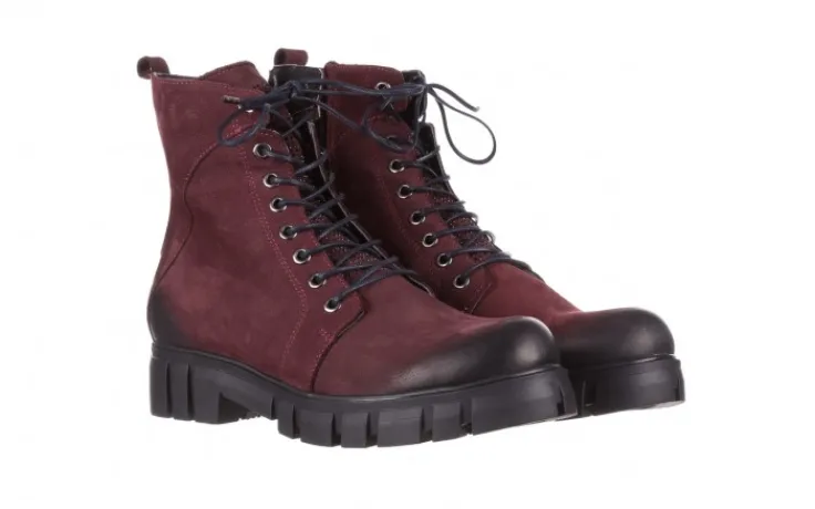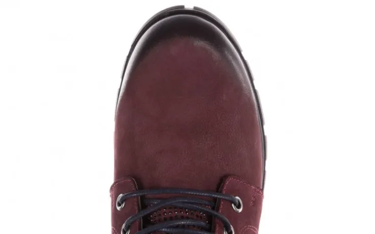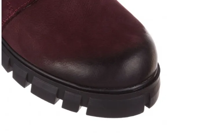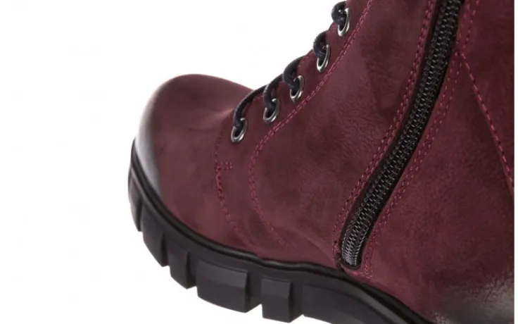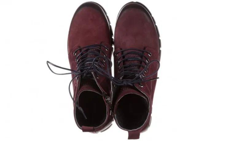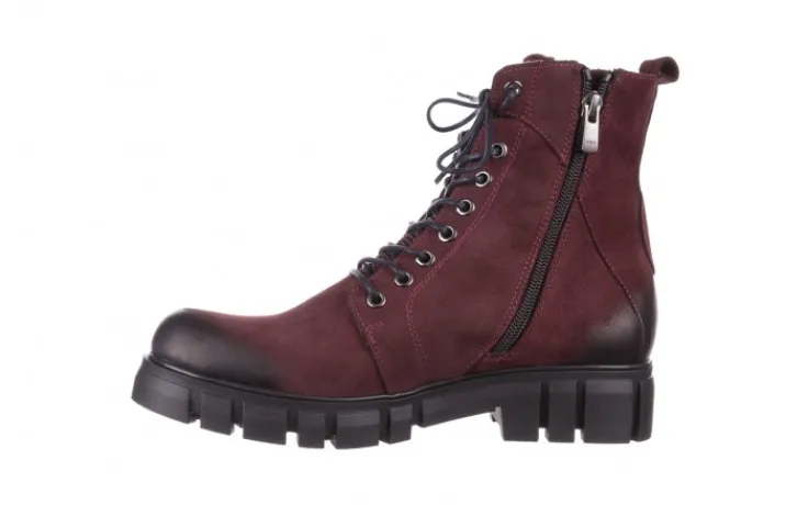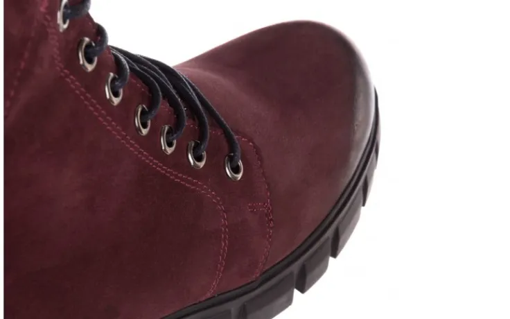 Trzewiki marki Bayla wykonane z naturalnej skóry nubukowej w kolorze bordowym.