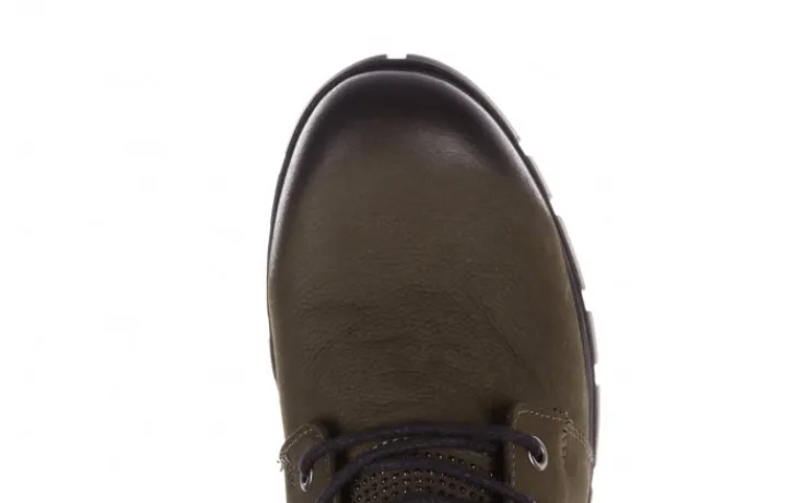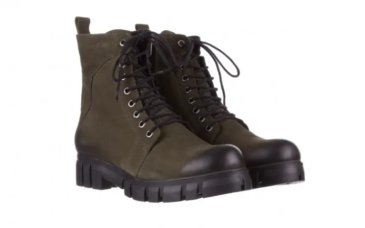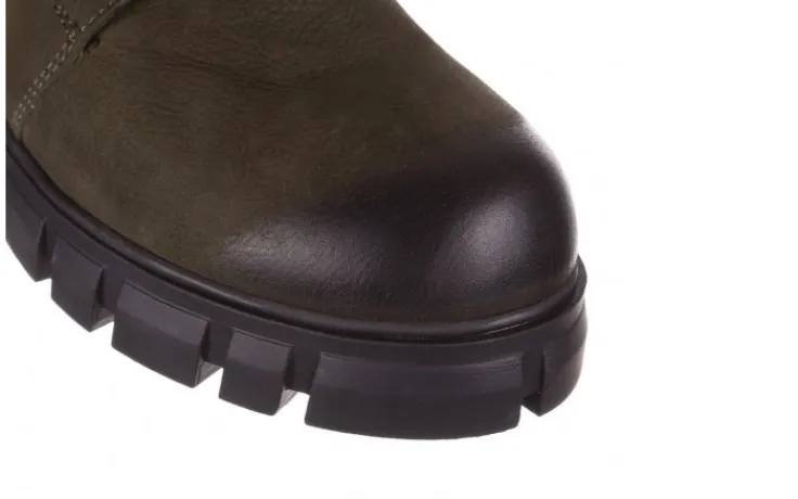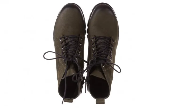 Trzewiki marki Bayla wykonane z naturalnej skóry nubukowej w kolorze zielonym.
