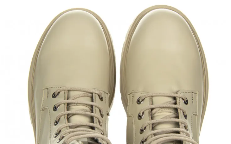 Trzewiki marki Bayla wykonane z wysokiej jakości skóry naturalnej licowej w kolorze jasnobeżowym.