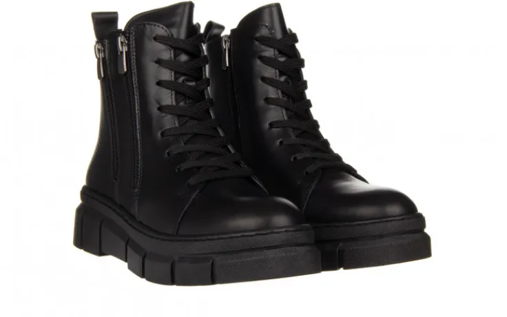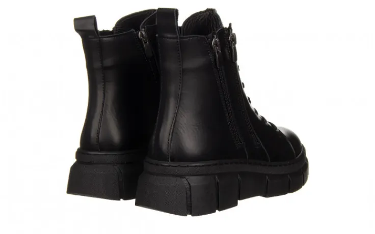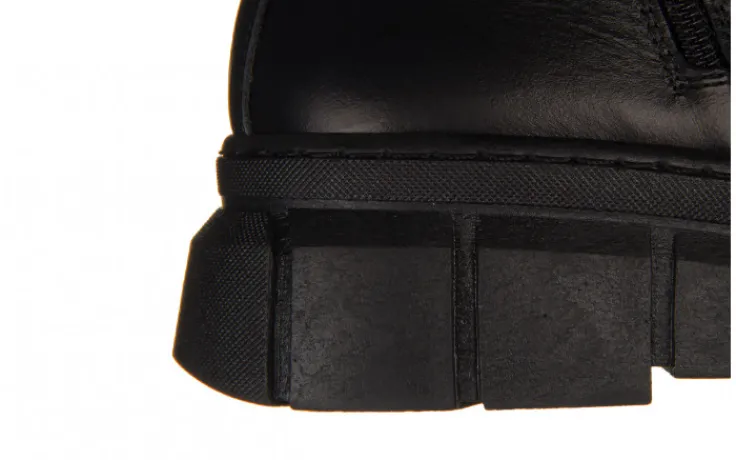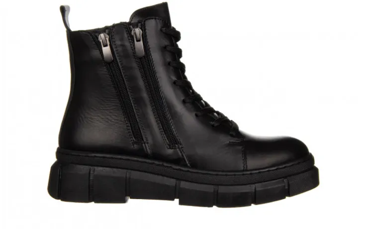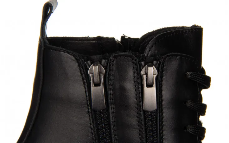 Trzewiki damskie sznurowane oraz zasuwane od wewnętrznej strony. Cholewka sięgająca za kostkę. Ozdobne dwa zasuwaki z zewnętrznej strony. Gumowa, antypoślizgowa podeszwa amortyzuje wstrząsy oraz izoluje stopę od zimnego podłoża. Wnętrze w całości ocieplane. Klasyczny fason bardzo ładnie prezentuje się na nodzę.