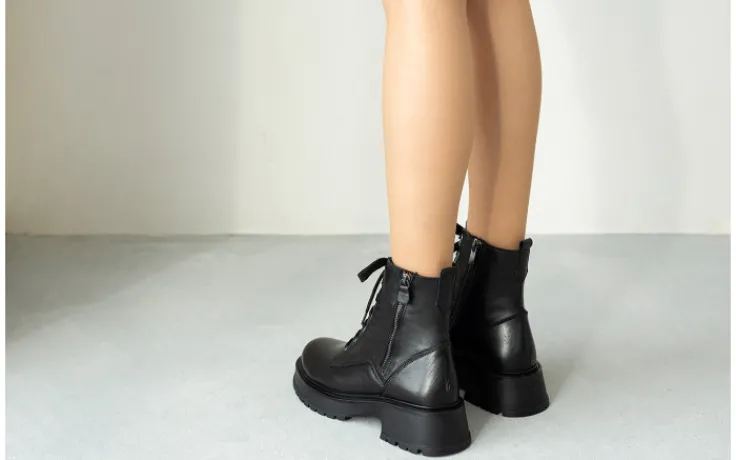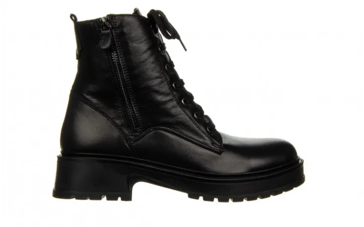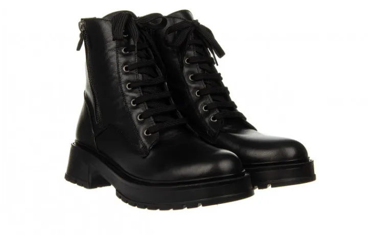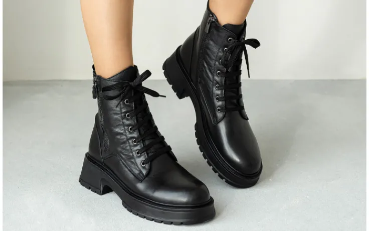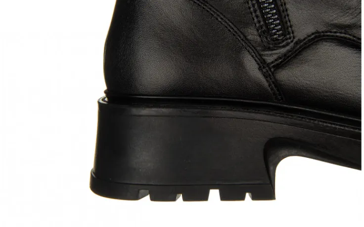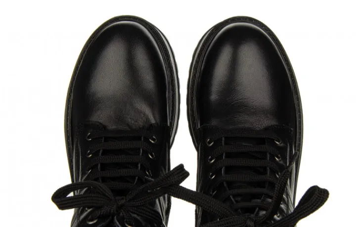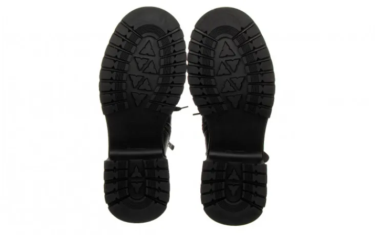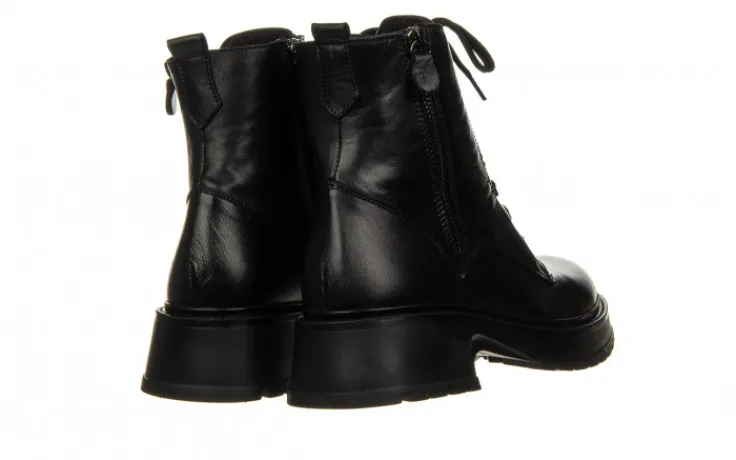 Trzewiki damskie sznurowane oraz zasuwane od wewnętrznej strony. Ozdobny zasuwak z zewnętrznej strony. Cholewka sięgająca za kostkę. Gumowa, antypoślizgowa podeszwa amortyzuje wstrząsy oraz izoluje stopę od zimnego podłoża. Wyściółka z miękkiego materiału, wkładka ze skóry naturalnej. Model z okrągłym noskiem. Klasyczny fason ładnie prezentuje się na nodzę, zachwyca swoim prostym krojem.