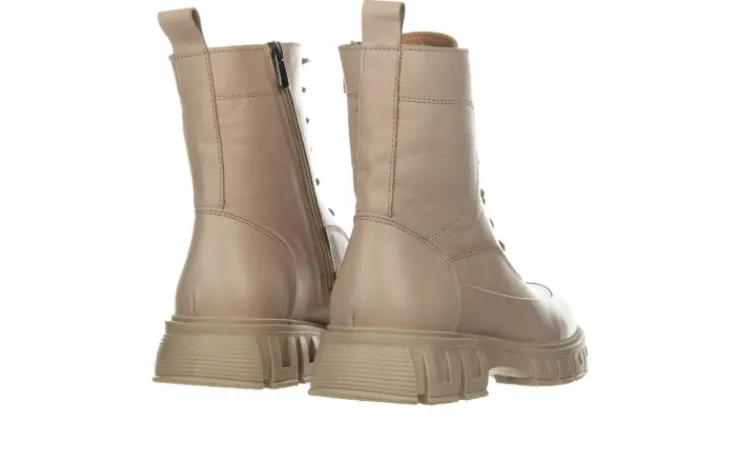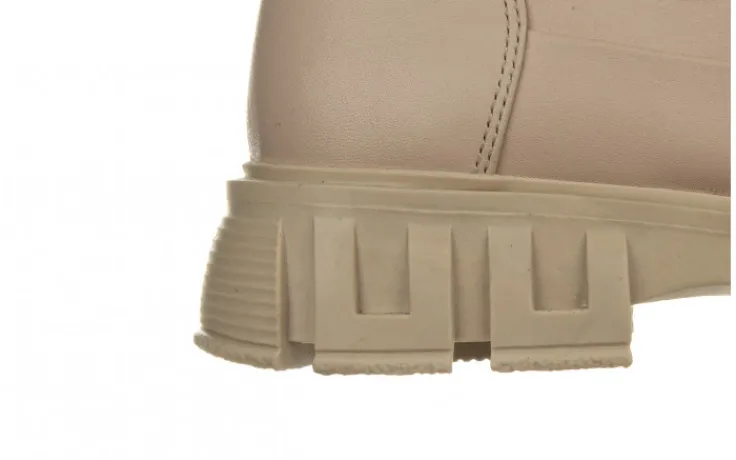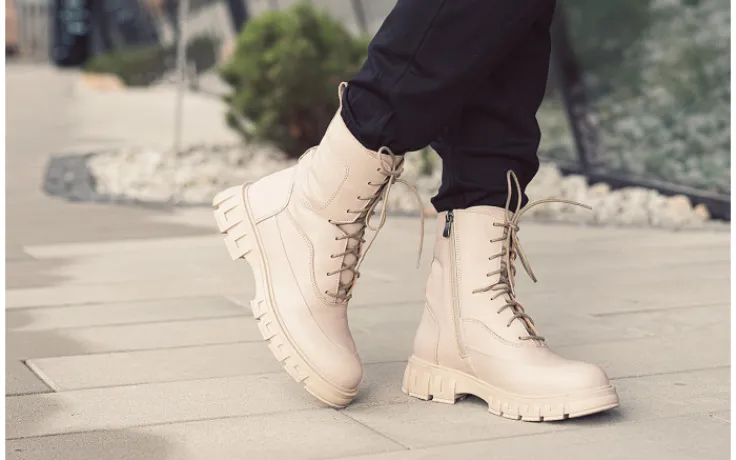 Wkładka oraz wyściółka delikatnie ocieplana w kolorze brązowym. Trzewiki na wygodnym 4-centymetrowym podwyższeniu. Z boku zasuwane na zamek. Z przodu sznurowane.
