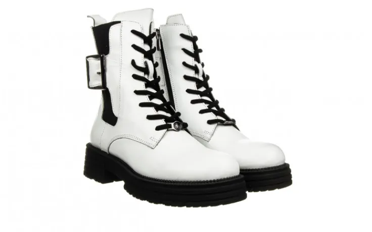 Trzewiki marki Bayla wykonane z wysokiej jakości skóry naturalnej licowej w kolorze białym.