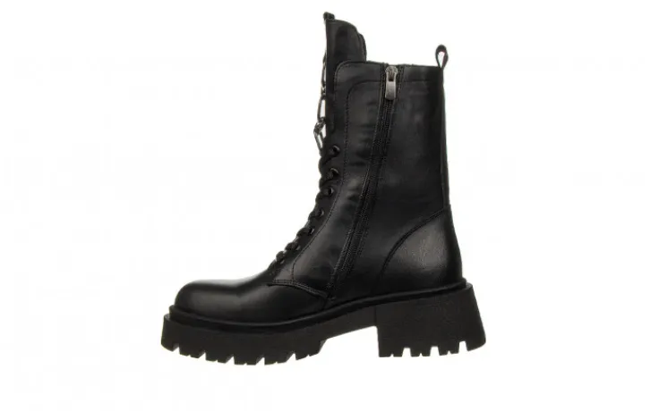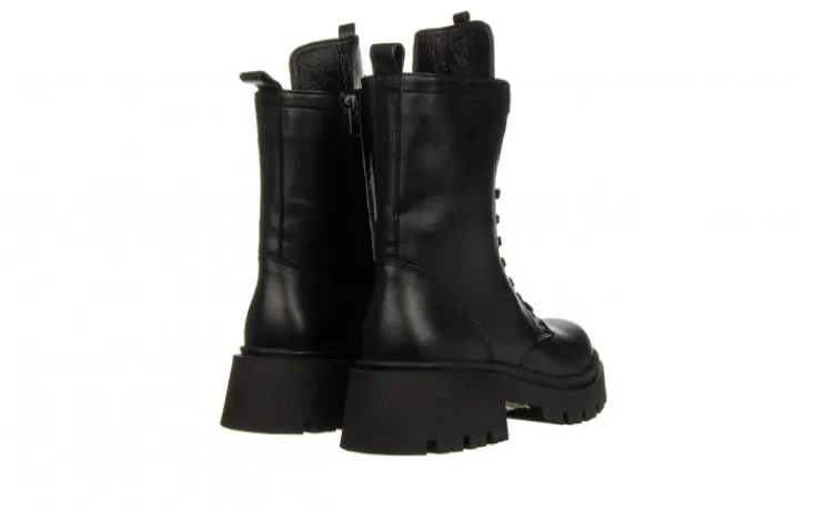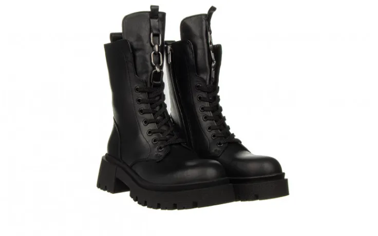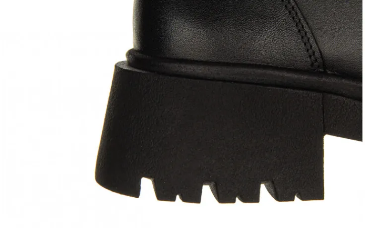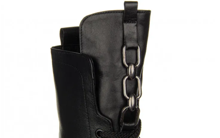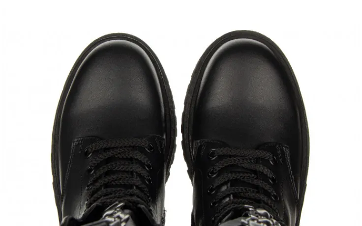 Trzewiki damskie sznurowane oraz zasuwane od wewnętrznej strony. Cholewka sięgająca do połowy łydki. Model przyozdobiony efektownym łańcuchem na języku. Gumowa, antypoślizgowa podeszwa amortyzuje wstrząsy oraz izoluje stopę od zimnego podłoża. Wnętrze w całości ocieplane. Model o fasonie workerów nada nieprzeciętnego charakteru całej kreacji. Trzewiki Bayla świetnie łączą ze sobą rockowy styl z codzienną modą tworząc wyrazisty fason.