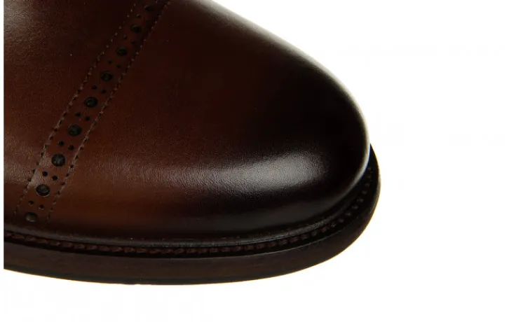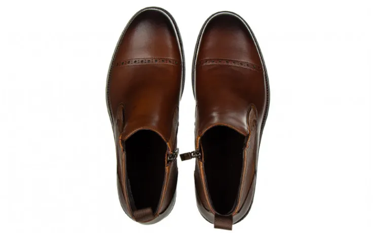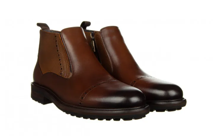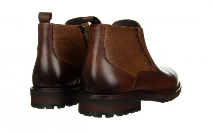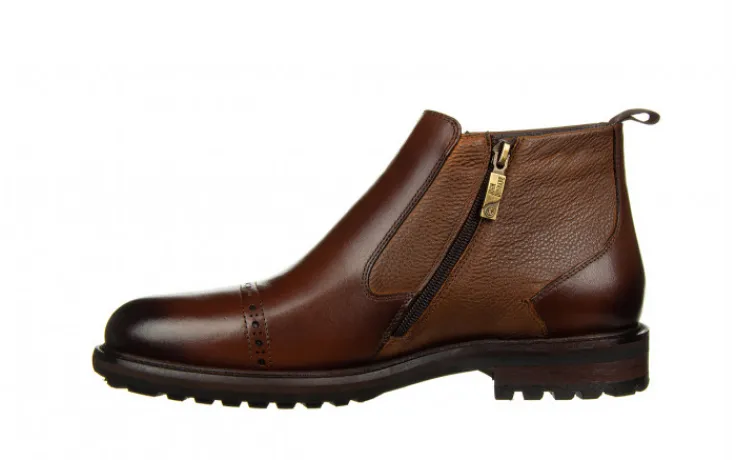 Buty wykonane z wysokogatunkowej skóry naturalnej. Obuwie zasuwane. Z zewnętrznej strony cholewki wszyta gumka ułatwiająca pracę podczas chodzenia. Gumowa, antypoślizgowa podeszwa izoluje stopy od zimnego podłoża. Wkładka oraz wyściółka ocieplane imitacją miękkiego futerka zapewnia komfort termiczny. To doskonałe buty na zimę dla mężczyzny ceniącego klasykę. Sprawdzą się w zestawie z garniturem lub jeansami i casualową marynarką.